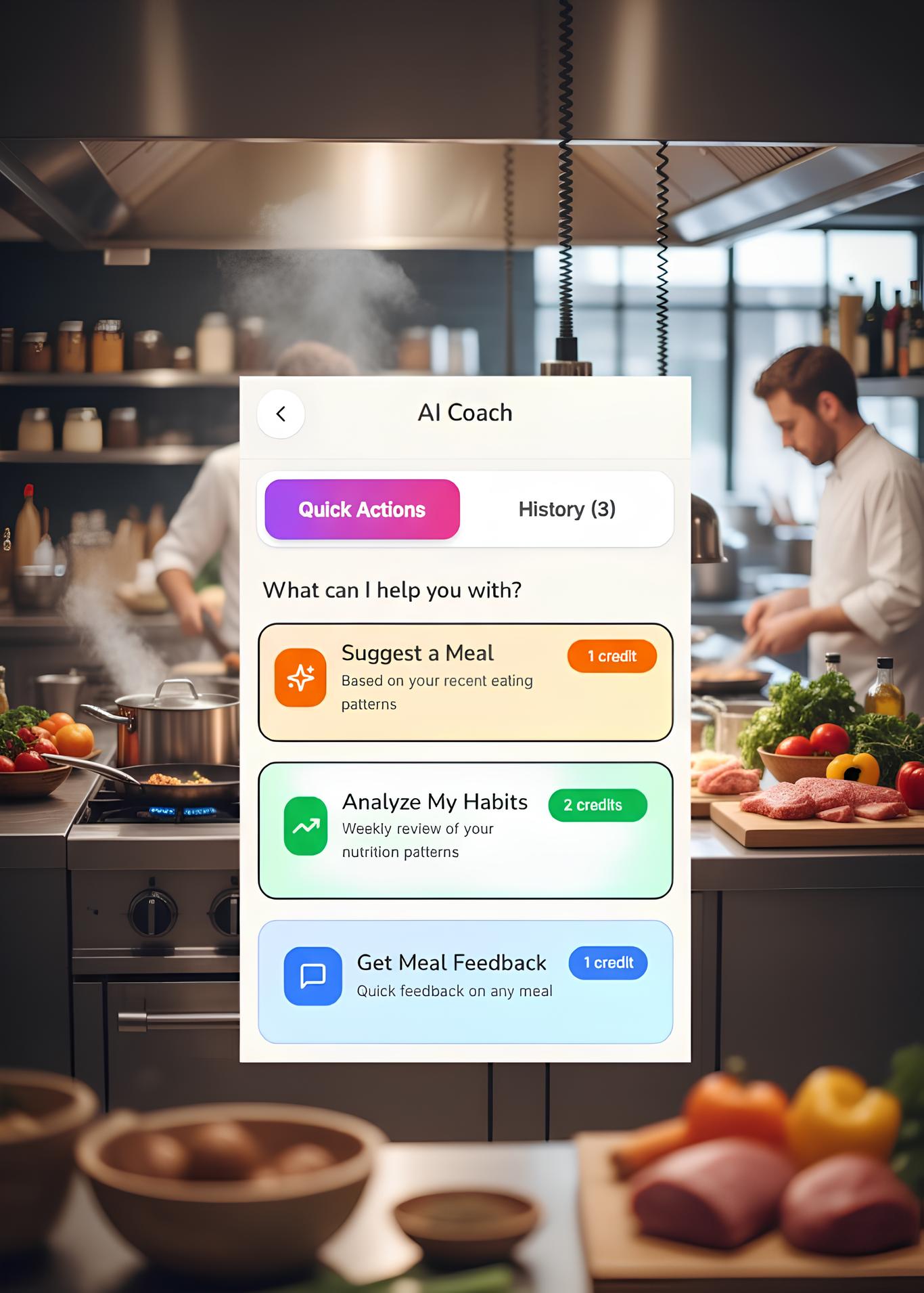 Go beyond tracking with personalized insights and challenges. Our AI coach helps you understand your habits, stay motivated, and build a healthier relationship with food.